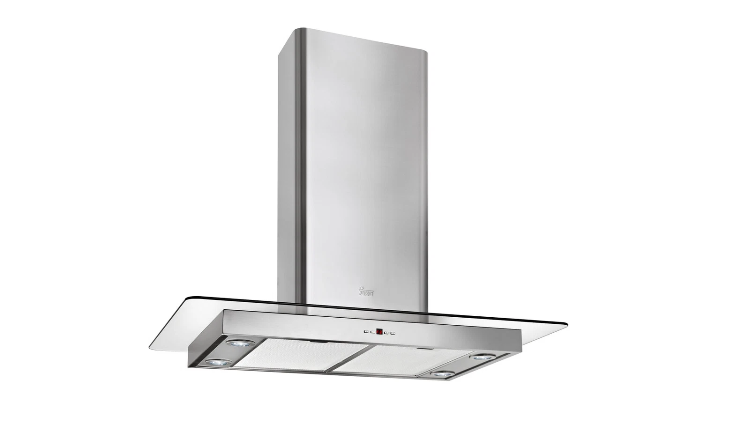 - Островная вытяжка со стеклянным крылом